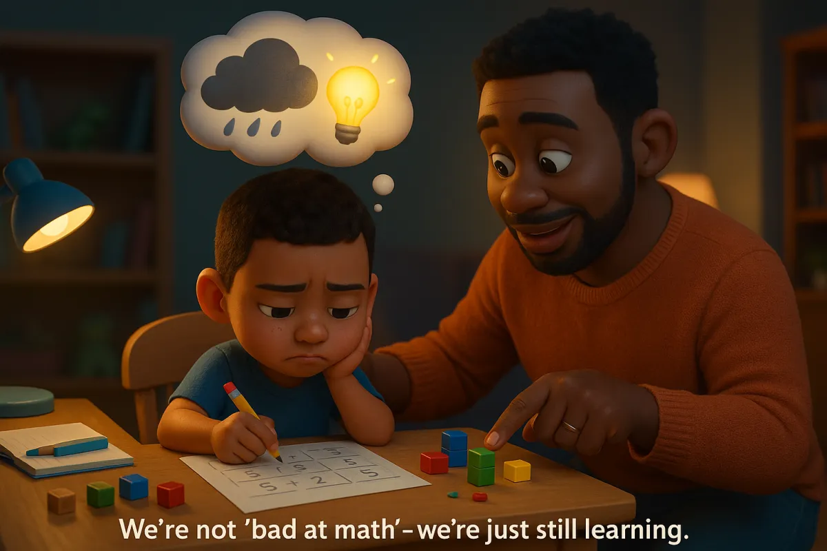 It offers positive math-talk phrases, mindset tips, and ways to connect math to what kids already love (art, cooking, building, games). It emphasizes praising effort and strategies rather than “being smart,” and helping children manage frustration so they see themselves as capable learners.